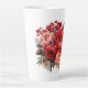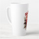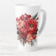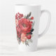 Holiday latte mug is shown with a lovely red floral print.