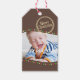 Personalise your Christmas gifts with these modern brown and polka dot photo holiday gift tags with a special greeting on back. Personalise with your own favourite family photo and change text as needed.
