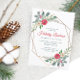 Elegant Christmas holiday luncheon invitation with watercolor bouquets of seasonal florals and greenery on a copper gold geometric frame. Easily personalise the type of event (luncheon, brunch, dinner, tea party, etc.), as well as other event details in modern red and green script and typography.