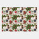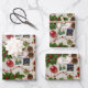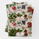 This delightful wrapping paper features a charming collage-style design with a nostalgic holiday theme, set against a light, weathered wood-grain background.