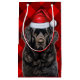 Dog lovers will adore receiving or giving this cute and funny holiday gift bag featuring an adorable Newfoundland dog in a Santa hat, on a red buffalo seasonal plaid patterned background.