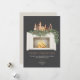 Modern Merry Christmas card with elegant watercolor fireplace with garland and scandi style wooden christmas tress in muted colours. This no photo holiday card includes template space for one message and family names.