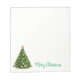 Notepad is shown in white with a festive holiday Christmas tree print.
