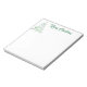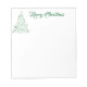 Notepad shown in white with a holiday Christmas tree print in colours of green and with green Merry Christmas text.