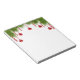 Notepad shown in white with a holiday fir bough with ornaments print.