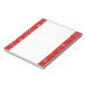 Notepad shown in a red and white festive holiday Christmas snowflakes print.