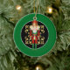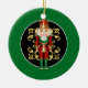 This holiday tree ornament is shown with a festive Christmas nutcracker print.