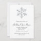 An icy snowflake with illustrated crystals, gems and glitter accents this elegant white Holiday Open House Invitation, giving it a festive and sparkly look.