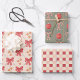Holiday ornaments, candy canes & red bows wrapping paper sheet