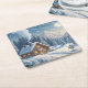 Holiday paper coaster set is shown with a charming winter scene print.
