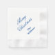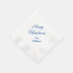 Holiday paper napkin shown in white with a blue colour holiday message.