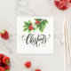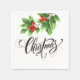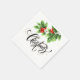 Christmas holiday paper napkin is shown in the standard cocktail size, shown in white with a festive holly berry print design.