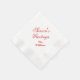 Holiday paper napkin shown in white with red holiday message.