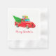 Holiday paper napkins standard coined cocktail size shown in White with a festive Christmas red truck and tree print.