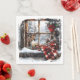 These standard style luncheon napkins are anything but standard, shown with a festive vintage holiday winter scene art print.