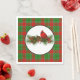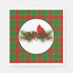 This paper napkin is shown in a festive Christmas holiday plaid and cardinal print design.