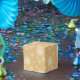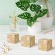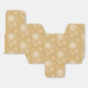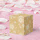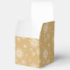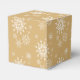 This holiday party favour box is shown in a festive Christmas holiday gold and white snowflakes print.