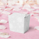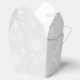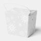 This holiday party favour box is shown in a festive Christmas holiday silver and white snowflakes print.