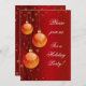 Holiday party invitation with dark red background and gold ornaments with swirls, ribbons, snowflakes and stars. Easily add your own details and have festive holiday party invitations.
