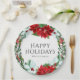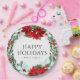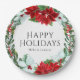 Holiday Party Modern Corporate Christmas Party Paper Plates features a chic holidays design of watercolor red and white poinsettia flowers, holly and mistletoe in festive red, white and green on a white background. The text "Happy Holidays" is written in calligraphy script typography and personalised with your company name below. Perfect for your corporate Christmas Holiday Party. Simply edit the text in the text boxes provided. Designed by ©Evco Holidays www.zazzle.com/store/evcoholidays