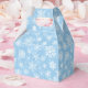 Party favour box is shown with a Holiday snowflakes print.