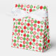 Party favour box is shown with a Holiday colours trees and snowflakes print.