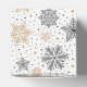 Party favour box is shown with a Holiday snowflakes print.