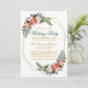 Elegant Watercolor Poinsettia Floral Green and Gold Script Holiday Party Invitation includes beautiful watercolor red poinsettias, botanical greenery, winter foliage, holly berries, white roses, pine cones and blue berries. Gold Geometric Frame.