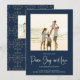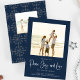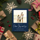 Classic and Simple yet elegant navy blue snowflake pattern, this design is completely editable. With calligraphy script. This festive, elegant, and unique multi-photo Christmas photo card template is a 2 photo layout. Celebrate with this unique holiday and festive Christmas card. This design features a Christmas holiday navy blue pattern, one photo 2 family pictures, navy blue silver snowflakes, winter holiday elegant simple minimalist, fancy calligraphy script font, peace joy love quote saying, whimsical modern typography, 2 photo family picture template, holiday Christmas photo greeting card, minimal simple pattern style
