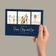 Classic and Simple yet elegant navy blue snowflake pattern, this design is completely editable. With calligraphy script. This festive, elegant, and unique multi-photo Christmas photo card template is a 4 photo budget postcard layout. Celebrate with this unique holiday and festive Christmas card. This design features a Christmas holiday navy blue pattern, navy blue silver snowflakes, winter holiday elegant simple minimalist, fancy calligraphy script font, peace joy love quote saying, whimsical modern typography,1 photo family picture template, holiday Christmas photo greeting card, minimal simple pattern style, one 1 photo budget postcard