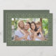 An elegant snowflake border. This classic Christmas photo card template features a 1 photo layout. A stylish festive design with a green background. A simple vintage and yet modern style to wish Happy Holidays to your friends and family. This design features Christmas holiday photo 1 one, snowflake elegant red green pattern, modern simple classic family rustic, family picture clean trendy, peace joy love script typography, modern elegant simple trendy, peace and joy traditional, modern calligraphy script font, simple and minimal family photo, elegant stylish holiday greeting card.