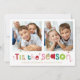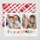 A super fun card design featuring the quote "TIS THE SEASON" in colourful type and cute cross hatch pattern on the backside. Maximum area to display your beautiful family too!