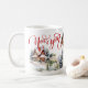 Holiday Photos on New Year's Coffee Mug Red Style. Insert your photos simply and easily. A beautiful winter Holiday illustration creates a great mood before the upcoming New Year holiday. Coffee in such a mug will warm you up and give you warmth. It will be a great and cute gift for New Year and Christmas. Congratulate your friends and loved ones with wishes for happiness during the winter Happy holidays!