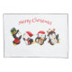 Holiday pillowcase is shown with a festive Christmas penguins group print.