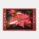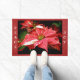 A beautiful red and white poinsettia greets guests with a wish for peace and joy.