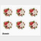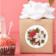 Holiday sticker shown with a festive red and white poinsettia flowers print.