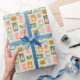 Add a touch of nostalgic elegance to your holiday gifts with this Christmas wrapping paper featuring vintage holiday postage stamps on a pastel mint green background. Each stamp captures the charm of classic Christmas scenes, making your presents look like they’ve travelled through time to spread festive cheer.