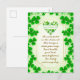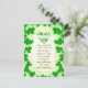 Visual Elements: The card features numerous green shamrocks, including a heart shape made of shamrocks near the top center. The overall color scheme is green and gold.