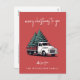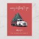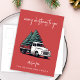 A festive Christmas postcard featuring the cheerful heading “Merry Christmas to you” in modern handwritten white script typography paired with a vintage-inspired Christmas tree delivery truck graphic. Designed on a dusky red background, this stylish retro greeting card combines nostalgic charm with a modern minimalist layout. Personalize the “with love from” section and underneath with your family name in complementary typography for a warm, custom touch. Perfect for sharing love and holiday wishes, this non-photo fun and classic design adds personality to the season while spreading festive joy. A timeless Christmas design ideal for families, individuals and couples alike.