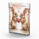 A sweet watercolor card featuring two charming bunnies holding a heart. A wonderful gift for your loved one on Valentine’s Day or any special occasion.