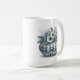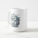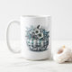 Holiday coffee mug is shown with a cute wintery blue plaid pumpkin floral print.