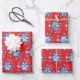Holiday red and blue snowflakes and stars wrapping paper sheet