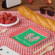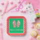 This cute Christmas paper plate features an adorable red and green striped bow on a background of red and white polka dots. Personalise with your choice of special text.