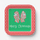 Holiday Red and Green Striped Bow and Polka Dots Paper Plate