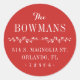 Custom printed holiday return address labels personalised with your family name and address or other custom text. This modern rustic design has a simple floral branch divider with mixed fonts on a red background. Use the design tools to choose any background colour, edit the text fonts and colours or upload your own photos to create a one of a kind round return address sticker.