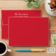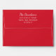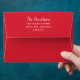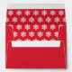 Red holiday envelopes feature a custom return address on the back flap in white. Includes a coordinating white winter snowflake pattern printed on the inside of the red envelope.