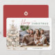 This rustic Christmas cards showcases a serene evergreen Christmas tree graphic and is accented with modern elegant script. The design offers space for a horizontal photo on the front and custom text for a personal message on the back.