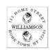 A circular personalised self-inking stamp design featuring Santa above and below your family name and encircled by your address details. Ideal for adding an extra hand stamped touch to your holiday cards.