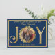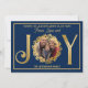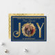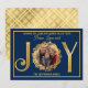 Simple faux foil, elegant and understated family photo "Wishing You A Holiday Season Filled With Peace, Love and Joy" wreath design with centre circular photo Christmas holiday design. Back has a faux foil plaid design. An elegant way to send out your holiday greetings this year!