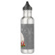 Great holiday water bottle for cat lovers features watercolor portrait of white and grey Siamese cat with festive NOEL bottom border on grey and white snowflakes background
